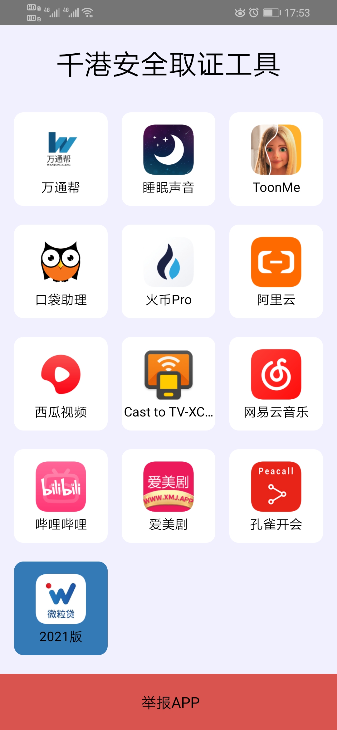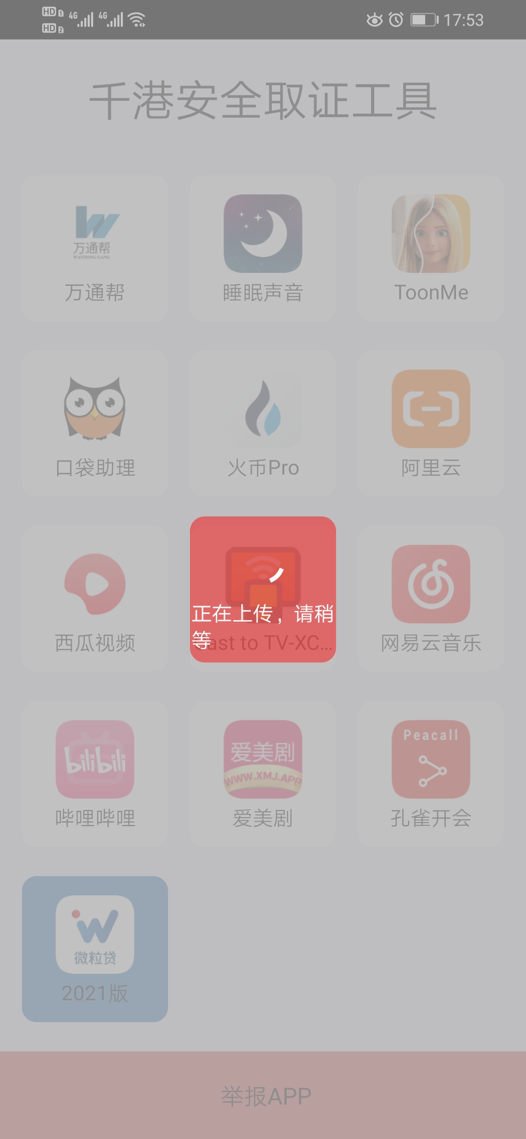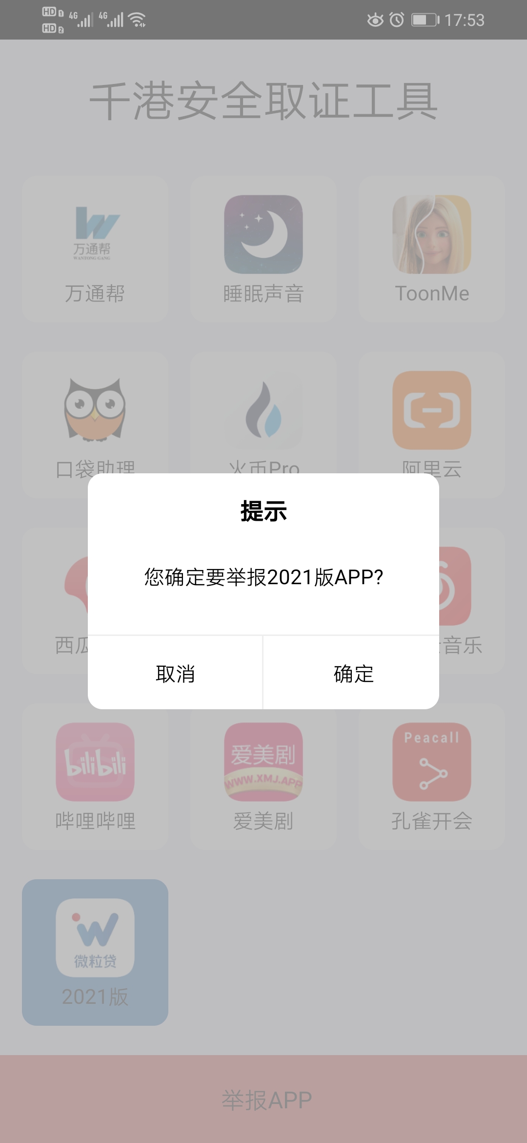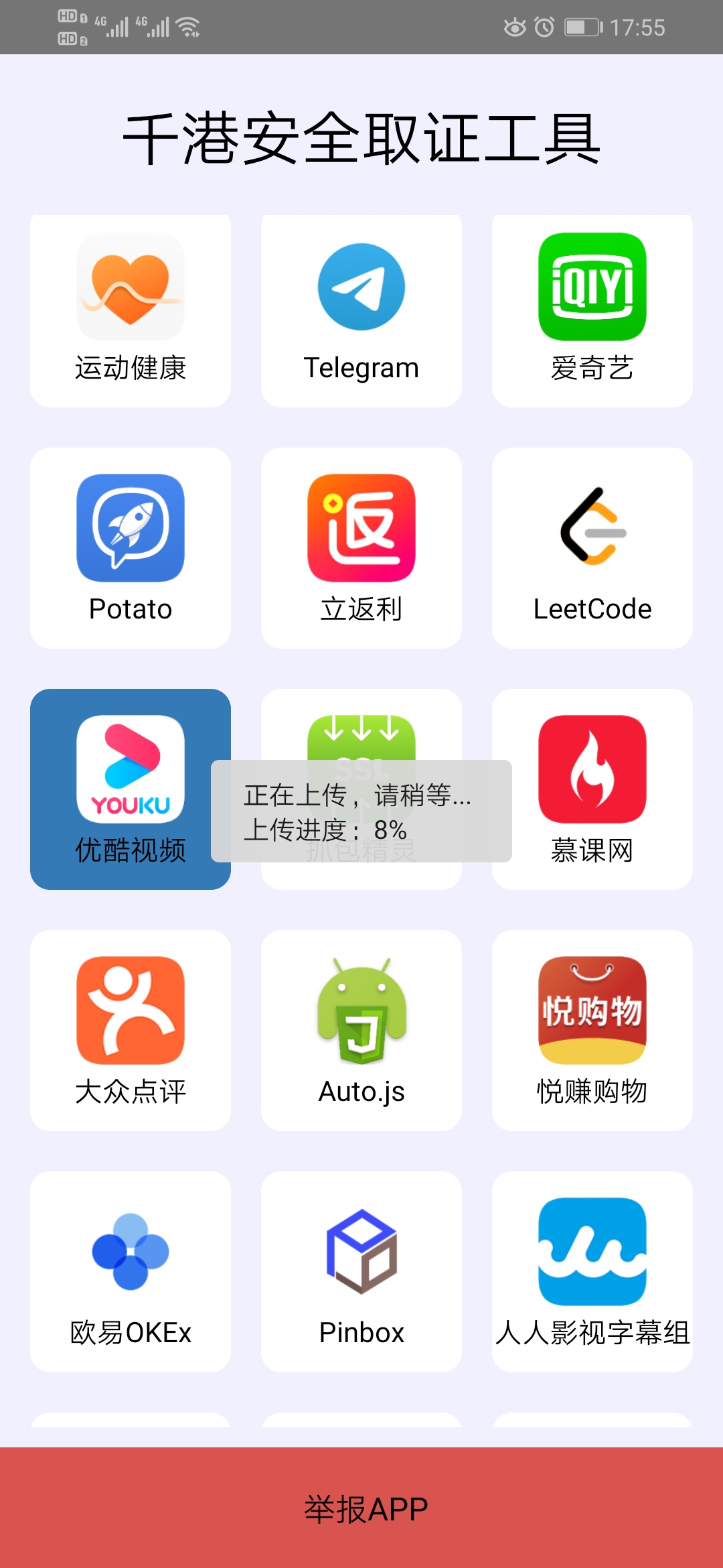 千港安全取证工具提供了识别用户手机上想要举报的APP,用户可以一键举报APP,操作方便快捷。
